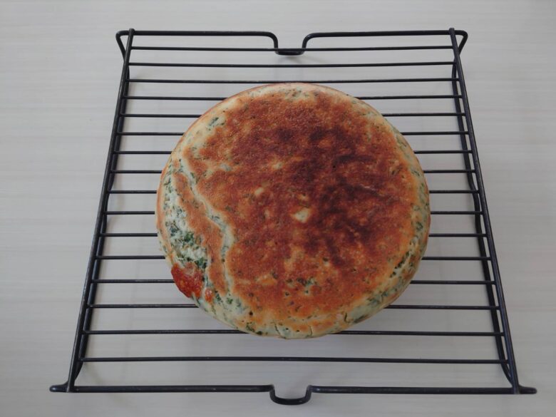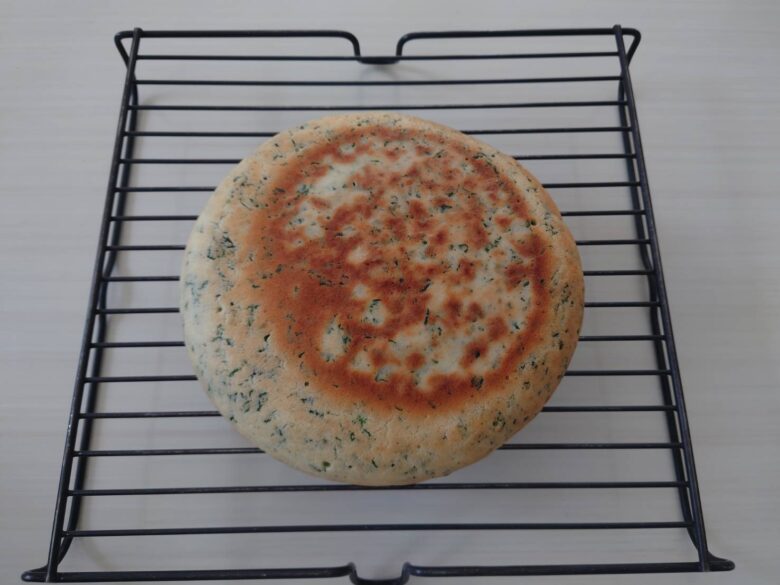 フライパンに流し込んだパン生地を上手にひっくり返すコツは、こちらに掲載しているのでご覧くださいね。