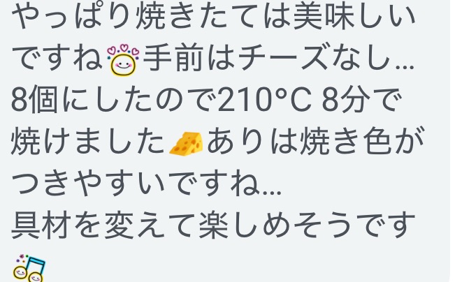 8個にしたので210℃ 8分で焼けました。ありは焼き色がつきやすいですね…