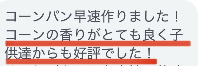 コーンパン早速作りました!コーンの香りがとても良く子供達からも好評でした!