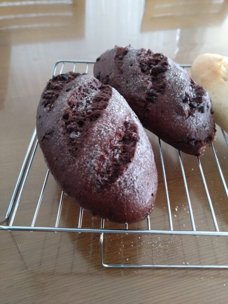 ココア生地の方もソフト冷めても表面カリッと感なく、両方とも振った粉がしっとりして固まっていたので