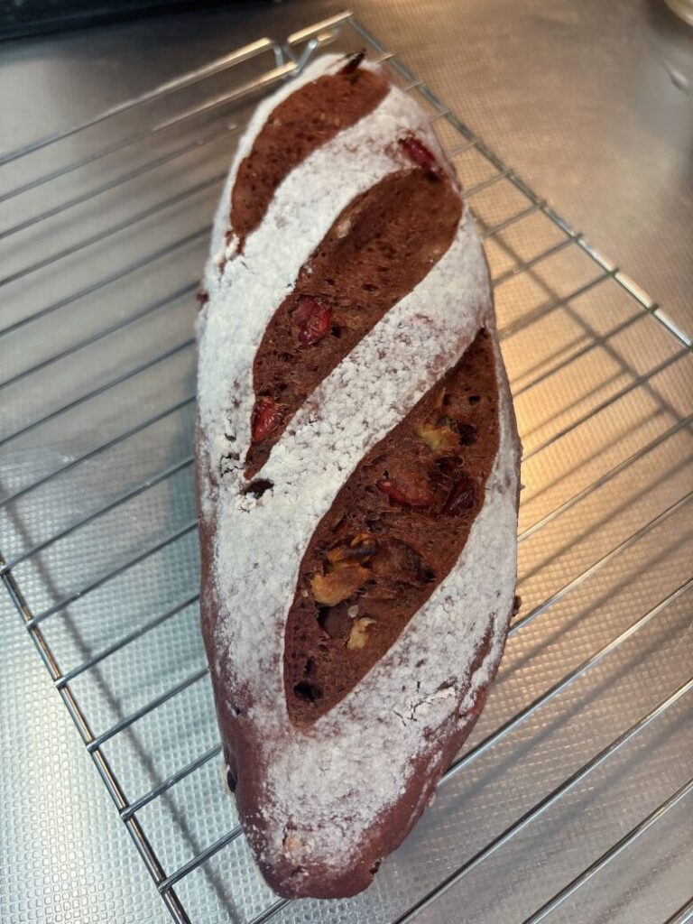 そのあとに250度予熱→250度上段で15分やいてみる。(2分割ではなく220gのレシピ量で1本にして焼くなら18分ほどあるといいですね)