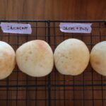 - 一次発酵:Aは約1.6〜1.7倍、Bは約1.7〜1.8倍。Bはアルファ米粉の影響でドーム状に。