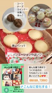 - 卵パン生地の上にツナマヨやハンバーグなど具材をのせる