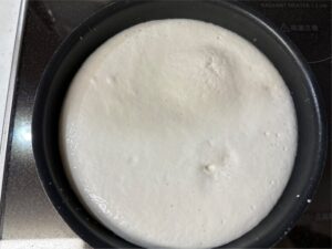 - 発酵の環境を整える(寒いときは乾いたタオルでフライパンをまく。真夏でない限りはタオルはあっても問題なし)